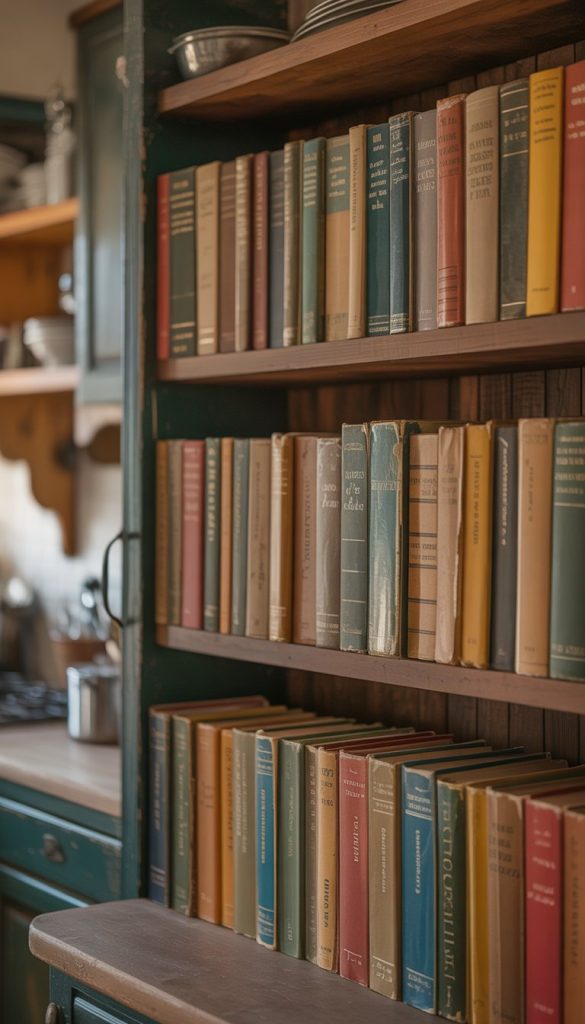 25) Display vintage cookbooks on shelves