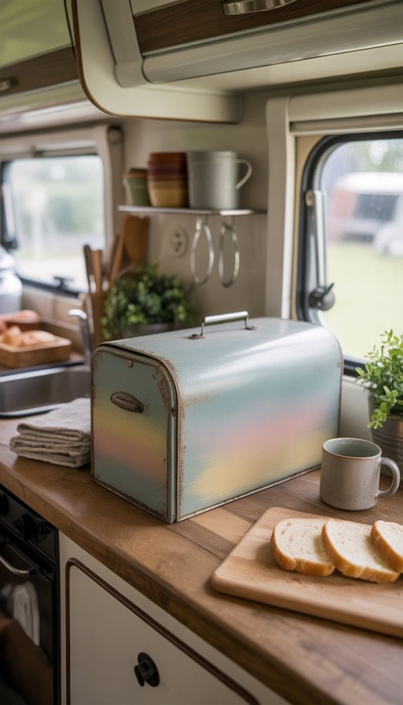 Use your bread box to store other small items too, like tea bags or snacks. It helps keep your kitchenette organized without losing style.