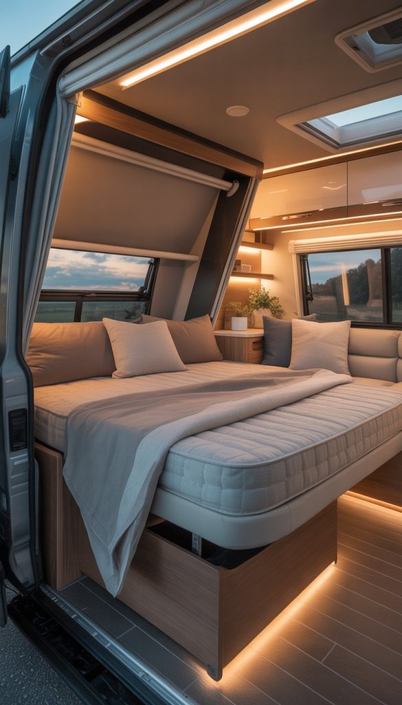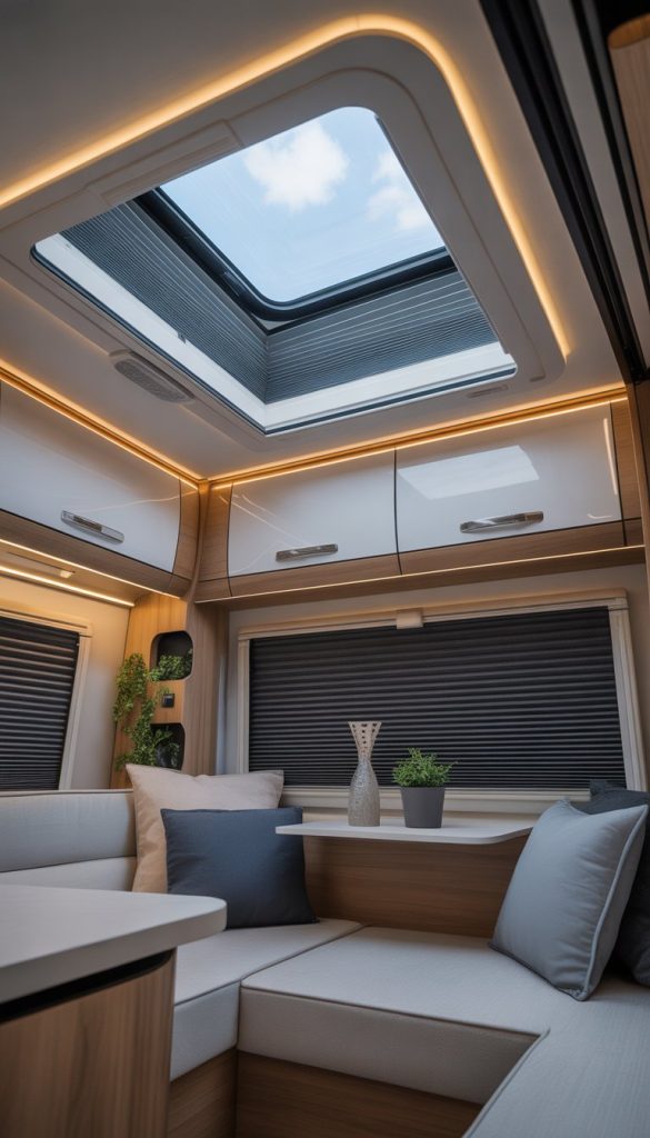 A good skylight with blackout shades adds comfort without taking up space. It’s a simple change that makes a big difference for your travel experience.