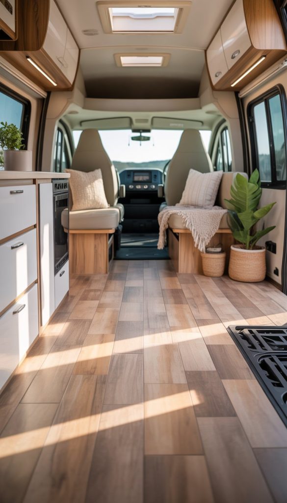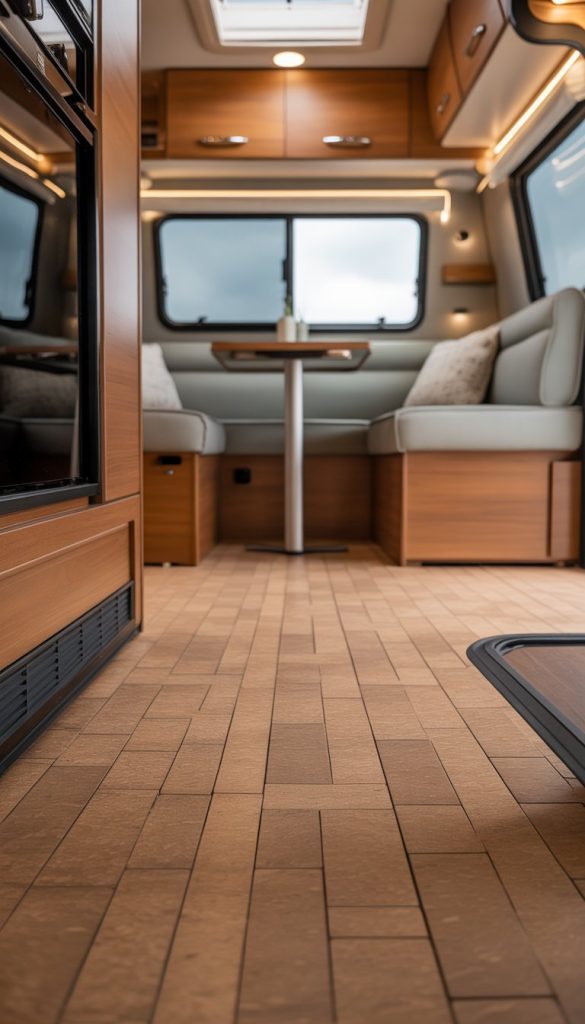 Cork tiles are a great way to make your RV floor feel softer underfoot. They add a bit of warmth, which can make your space more comfortable, especially on cold mornings.