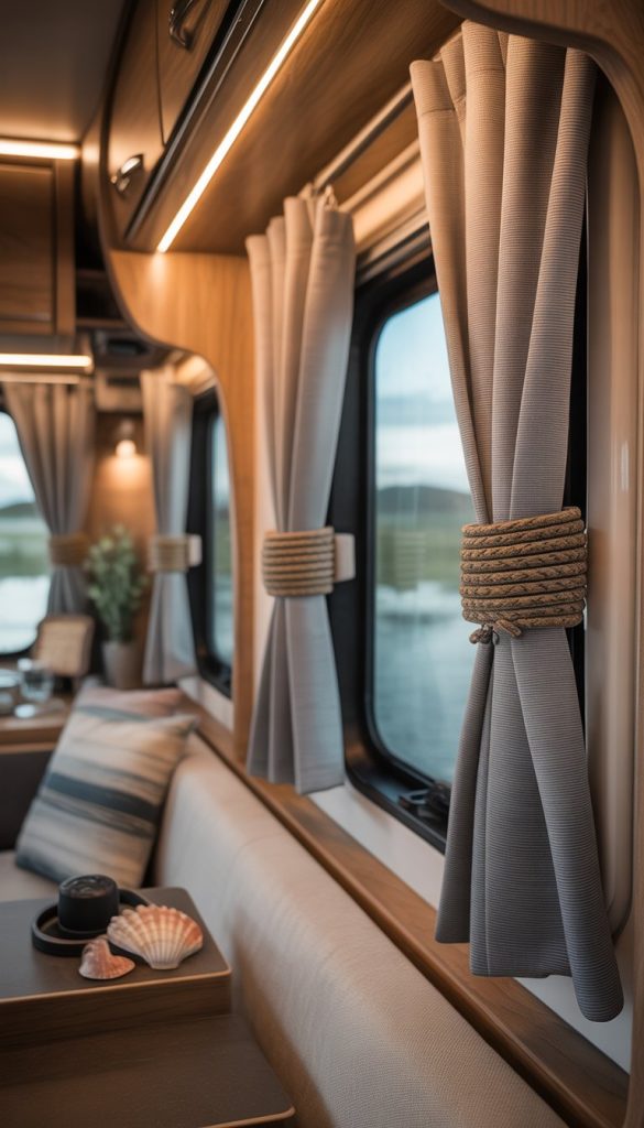 Using paracord as curtain tiebacks is a simple way to give your RV a fresh nautical look. Paracord is strong, flexible, and comes in many colors, making it easy to match your style.