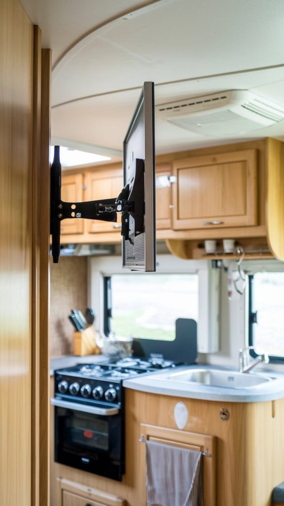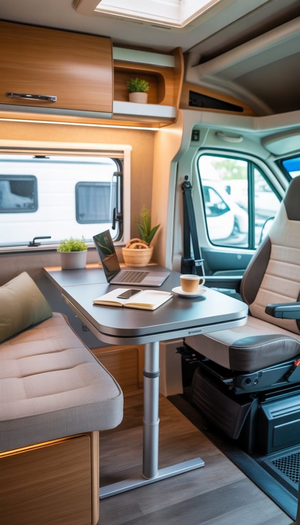 This setup lets you make the most of your RV’s small area. It keeps things flexible so you can switch between work and relaxation without much hassle.