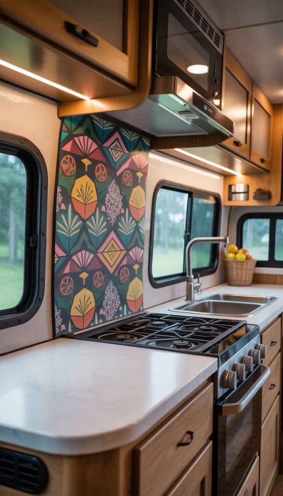 If you want to add some color and style to your RV kitchen, removable wallpaper is a great choice. It’s easy to apply and remove, so you can change the look anytime without damage.