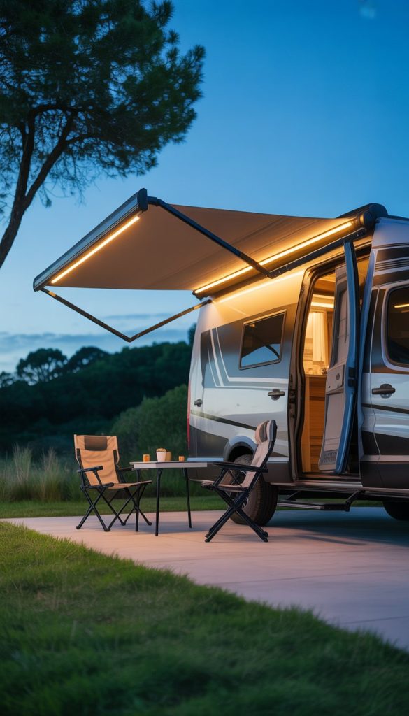 Pick an awning with adjustable LED brightness. This way, you can set the perfect light for reading, cooking, or just hanging out. Make sure the awning material is durable and water-resistant to last through different weather.