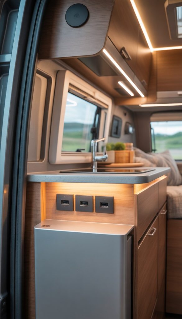 Adding USB charging ports under your cabinets is a smart way to save space. You can charge your phone, tablet, or other devices without cluttering countertops. It keeps your RV tidy and makes charging easy to reach.