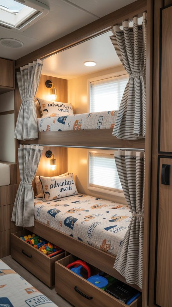 PRO TIP: Install USB charging ports near each bunk for devices, hidden behind a flip-down panel to keep wires tidy.