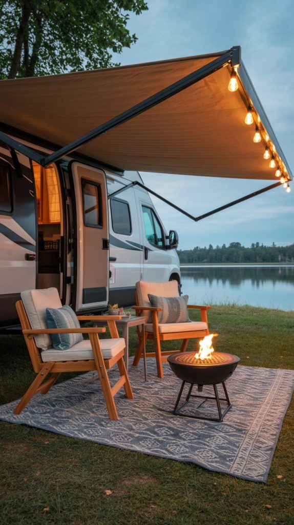 Extend your living space outdoors with a retractable awning, foldable furniture, and outdoor rugs. String lights or solar-powered lanterns create ambiance for evening hangouts.