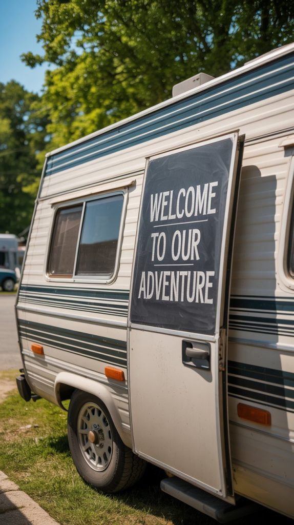 Want something even a bit more unique? Chalkboard contact paper applied to exterior storage doors creates rotating displays for trip mileage counts, welcome messages, or that evening’s dinner menu.