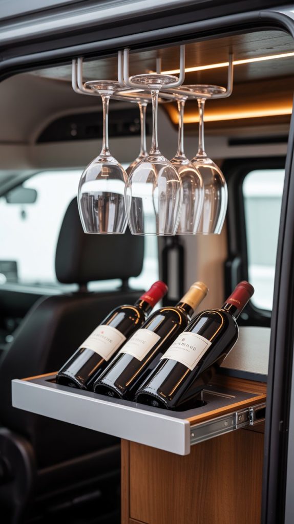 Craft a sophisticated beverage station in even the most compact RV with these oenophile-approved solutions. Dedicate just 12 inches of counter space to a pull-out drawer lined with non-slip drawer liner that securely cradles 2-3 favorite bottles at the perfect serving angle. Above it, install stackable acrylic wine glass holders that suspend stems upside down – this not only saves space but keeps dust out of your glasses.