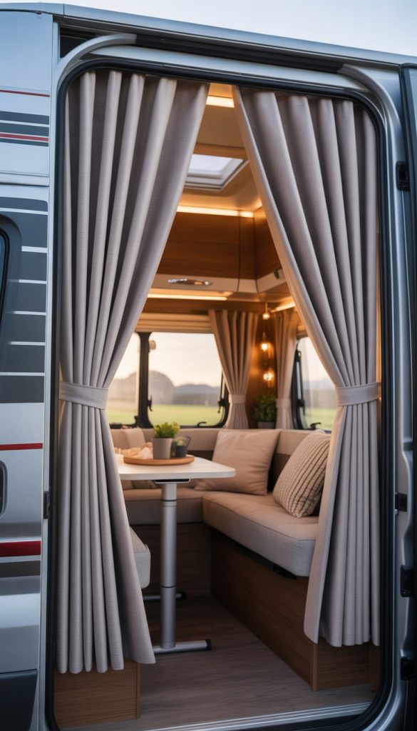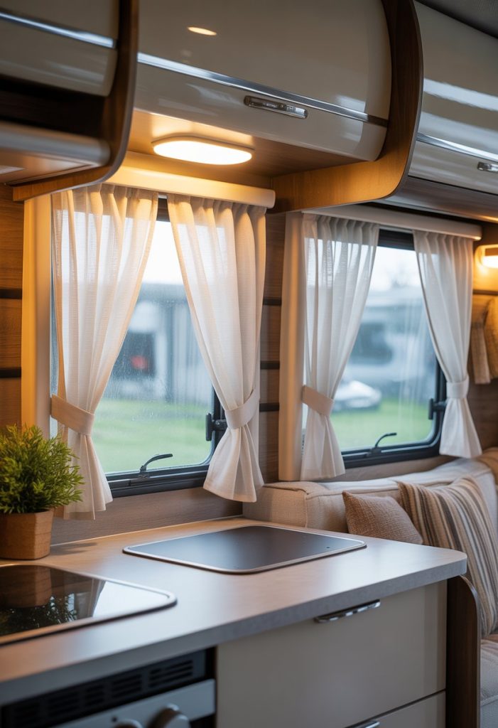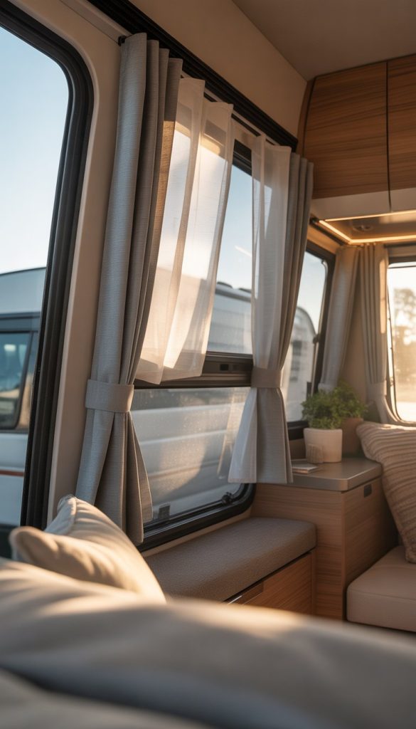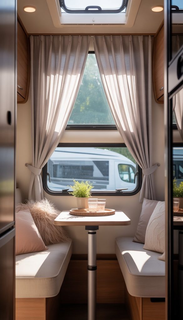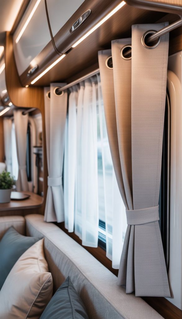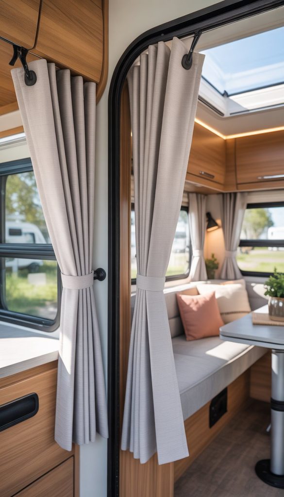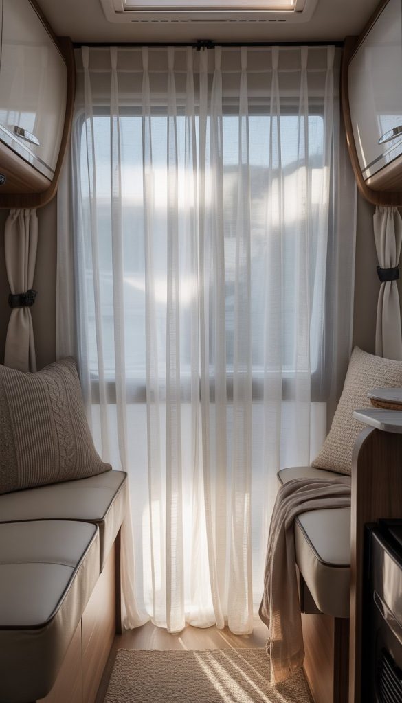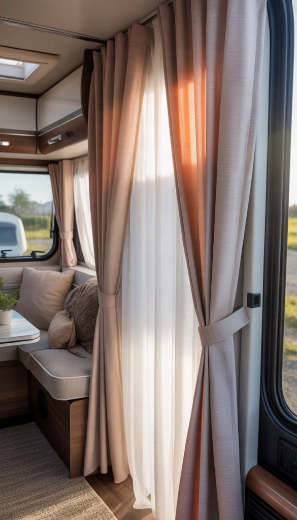 Adding sheer panels under your main curtains can make your RV feel brighter and more open. You get privacy without blocking all the natural light.