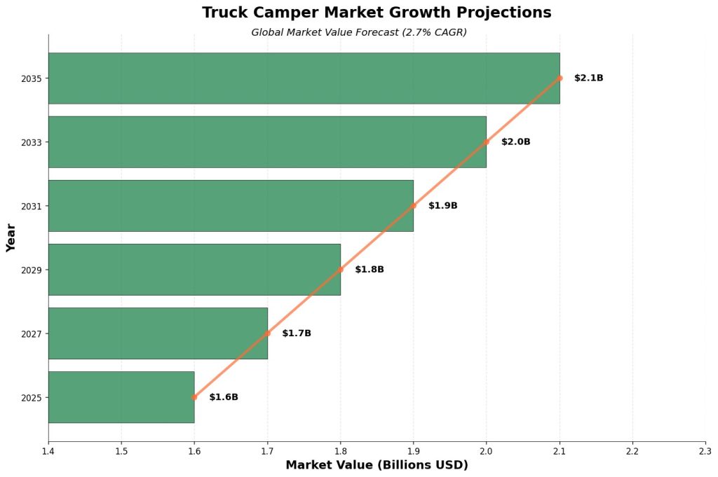 Market Insight: The global truck camper market is projected to grow from $1.6 billion in 2025 to $2.1 billion by 2035, driven by increased interest in off-grid camping and adventure travel.