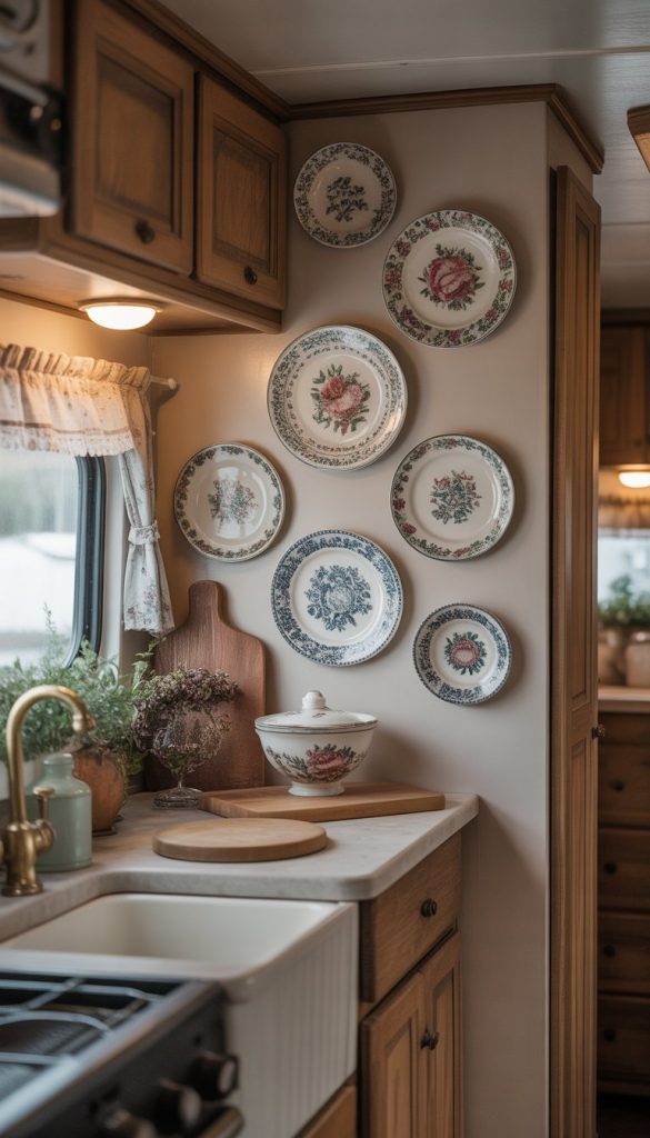 Adding decorative wall plates with floral designs can bring a soft, charming touch to your RV kitchen. These plates add color and pattern without taking up counter space. You can find plates with delicate flowers or bold blooms, depending on your style.