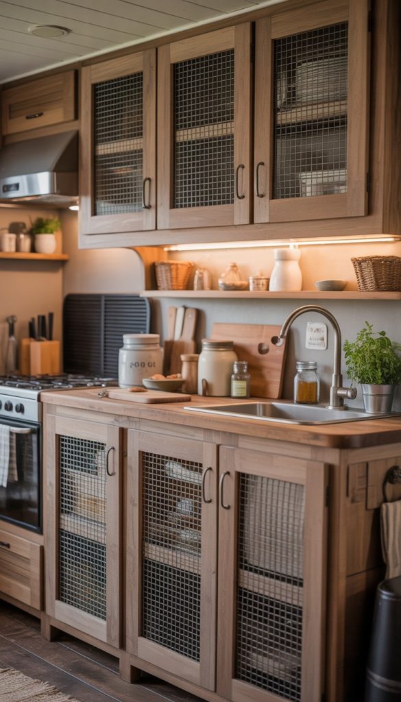 Wire mesh cabinet doors let air move freely inside your cabinets. This helps keep your kitchen fresh and dry. It’s especially useful if you store things like potatoes, onions, or bread.