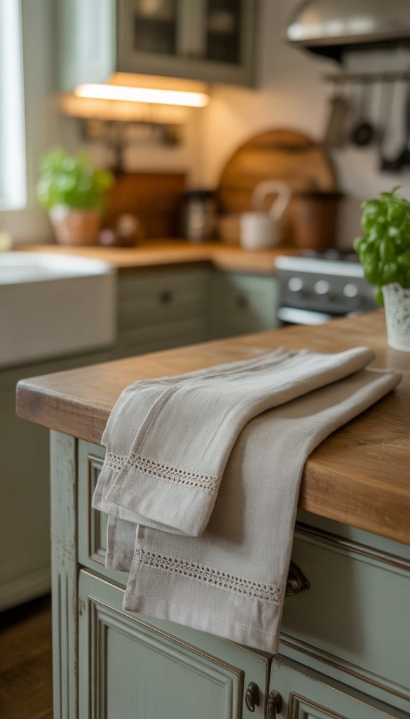 Choose light colors like cream or soft pastels. These match many kitchen colors and keep the space feeling bright. Make sure to have a few extra towels for daily use and cleaning.