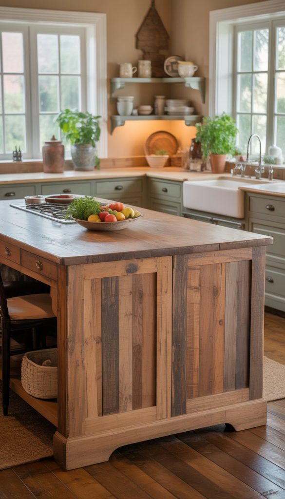 16) Reclaimed wood kitchen island