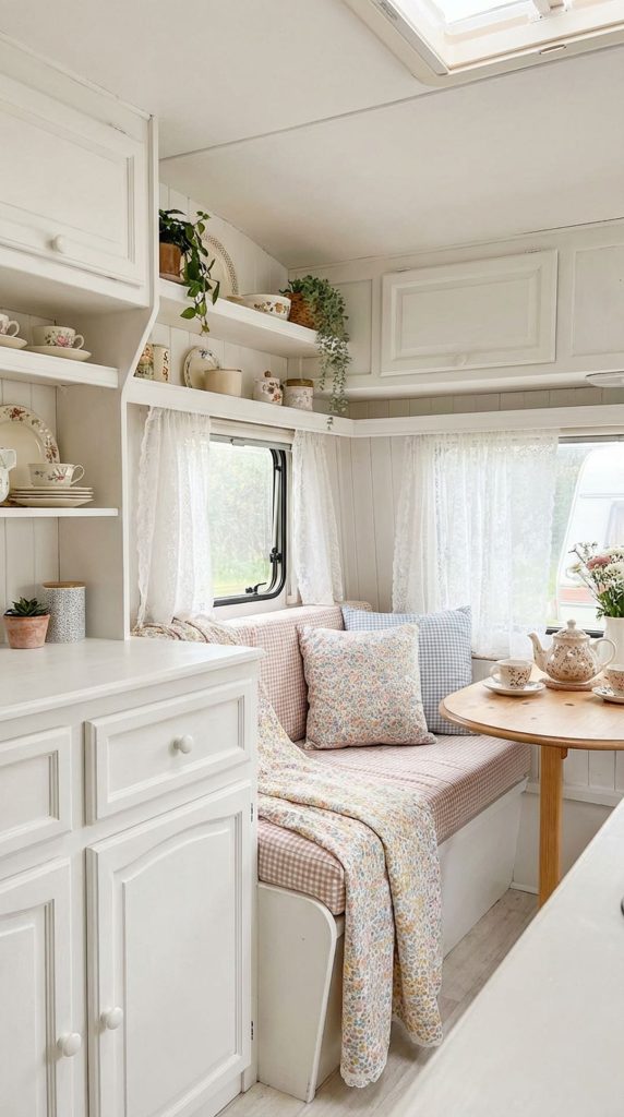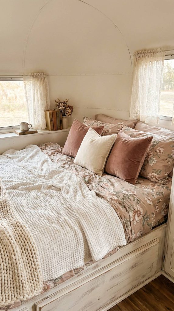 The beauty of the shabby chic aesthetic is its inherent flexibility and forgiving nature. Its emphasis on vintage finds, mismatched elements, and eclectic charm means there’s room for experimentation and personal interpretation. If you love a particular pattern combination but feel uncertain, live with it for a few days—sometimes combinations that seem risky at first become favorites once you adjust to them. Remember that creating a home, even a mobile one, is an ongoing process. You can always swap out pillows, change curtains, or adjust elements as your taste evolves. Trust yourself and enjoy the creative journey of making your camper truly yours.