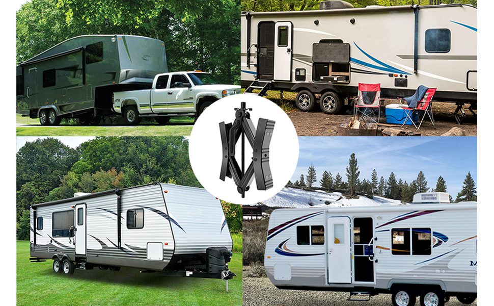 - 【Universal】RV wheel stabilizer can retract down to 3.5″ and extend up to 12″. Applications for : Camping Trailer, RV, Heavy Duty Trucks, Fifth Wheel Trailer, Tandem Wheel Trailers, Toy Hauler, Motor Homes, etc.